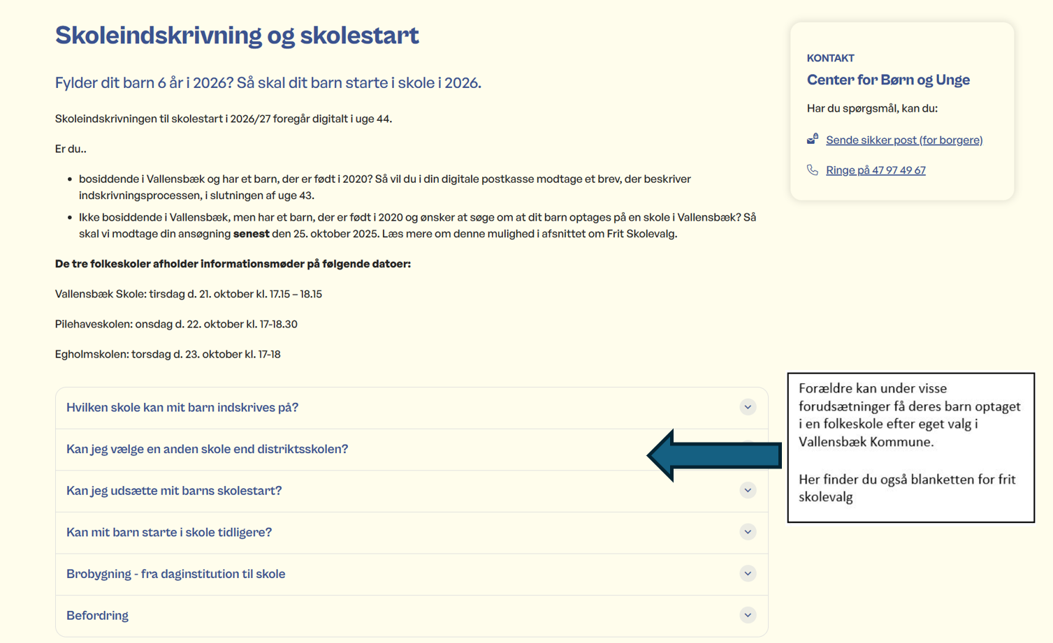 Læs mere her: Skoleindskrivning/frit skolevalg